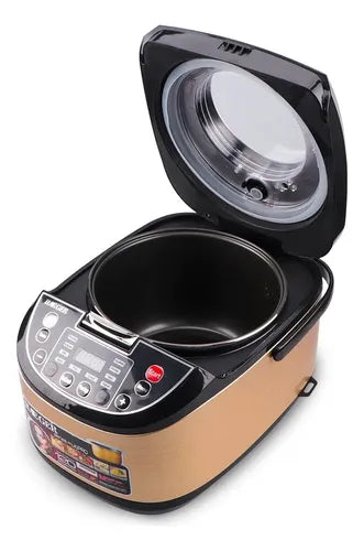 Descubre una nueva era en la preparación de alimentos con nuestra Olla Eléctrica Digital Multifuncional de 5 litros. Diseñada para ofrecer eficiencia y comodidad en cada platillo, esta olla se convierte en tu compañera esencial para crear deliciosas comidas con tan solo un toque.- Versatilidad en un Toque: Desde arroz perfectamente cocido hasta sopas y guisos, esta olla digital multifuncional te permite preparar una variedad de platillos con solo presionar un botón.- Tecnología: Con funciones preprogramadas y pantalla digital, ajusta la temperatura ademas el tiempo de cocción con precisión para resultados perfectos. La capacidad de 5 litros te permite cocinar porciones generosas para compartir.- Diseño Compacto: La eficiencia llega a tu cocina con este aparato de diseño compacto y controles intuitivos. Cocinar se convierte en un proceso placentero, ahorrando tiempo en esfuerzo en tu rutina diaria.- Mantenimiento de Calor: Olvídate de las preocupaciones por la temperatura de tus platillos. La función de mantenimiento de calor asegura que tus comidas estén listas para servir en cualquier momento, manteniendo la frescura y el sabor.- Capacidad para Compartir: Prepara porciones generosas para compartir momentos especiales con tus seres queridos. La olla de 5 litros es ideal para reuniones familiares o cenas con amigos.
