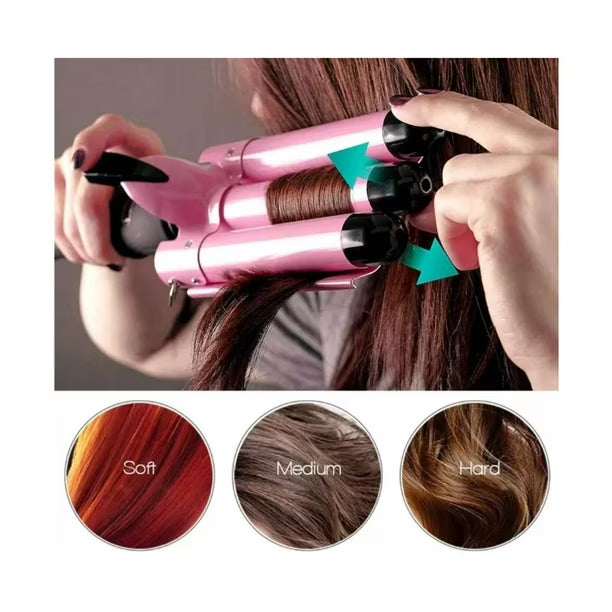 ¿Cansada de pasar horas frente al espejo para conseguir ondas perfectas? La Onduladora Rizadora Profesional te ofrece la solución ideal para lucir un cabello ondulado envidiable en cuestión de minutos. Cinco características prácticas que te encantarán: Ondas duraderas: Sus tres barriles de cerámica de alta calidad distribuyen el calor de manera uniforme, creando ondas definidas y duraderas que resisten todo el día. Control de temperatura ajustable: Elige la temperatura ideal para tu tipo de cabello (de 180 a 220 grados) y evita daños por calor excesivo. Calentamiento rápido: En solo unos segundos, la onduladora estará lista para usar, ahorrándote tiempo y esfuerzo. Diseño ergonómico: Su mango ligero y cómodo te permite peinar tu cabello con facilidad, sin fatiga. Apto para todo tipo de cabello: Ya sea que tengas cabello fino, grueso, rizado o liso, la Onduladora Rizadora Profesional te ayudará a lograr las ondas que deseas.